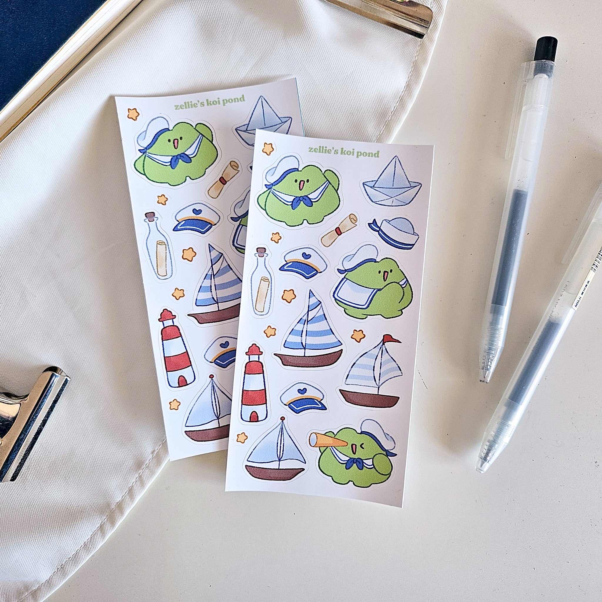 sea sailor frog vinyl sticker sheet